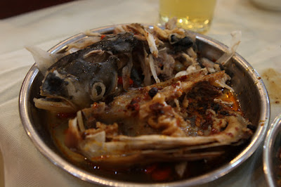 One of the specialties of this hot pot restaurant was the... fish head, which I will say I have never had before. They literally cut fish heads in half, and placed it into the boiling pot. The servers would then fish them out and serve them to you. I definitely avoided the eyes and I guess the brain, but did eat the rest of the head (which is supposed to be the most tender part of a fish by the way). This was definitely a meal I would not find often in the United States - nor would I try to I think. Otherwise, we had lots of lamb and other meats, and the meal overall was extremely good! =)